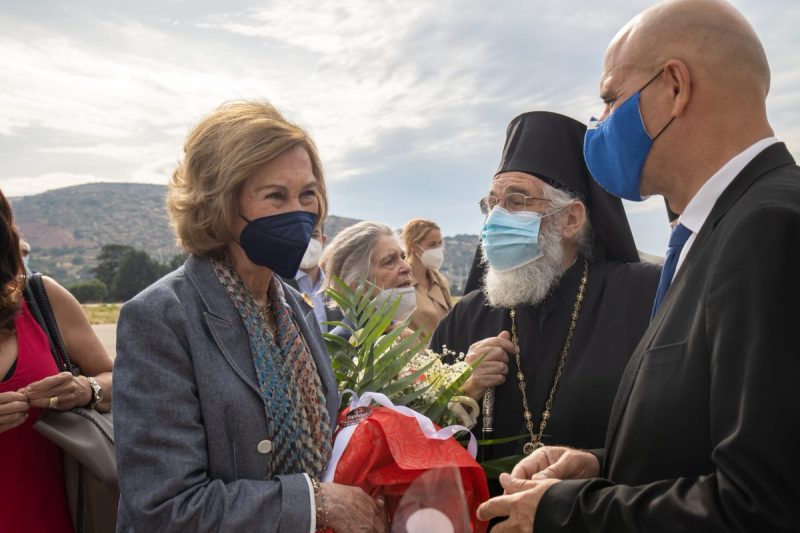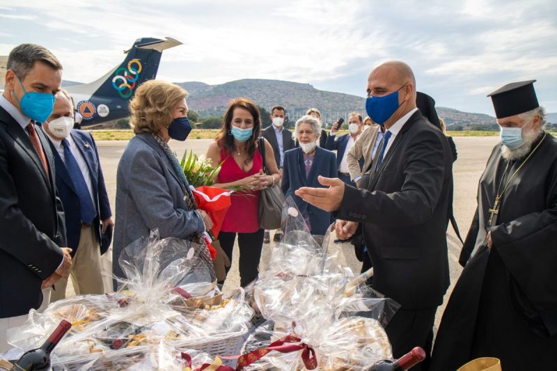 Ο Δήμαρχος Λέρου αφού καλωσόρισε τη Βασίλισσα Σοφία, τόνισε την ασφάλεια που παρέχει η Λέρος ως ένα νησί COVID-FREE, προσφέροντας στους εκλεκτούς προσκεκλημένους παραδοσιακά προϊόντα που παράγονται στο νησί, καθώς και έναν πίνακα που απεικονίζει στιγμές από τις επισκέψεις στη Λέρο της μητέρας της, Βασίλισσας Φρειδερίκης, κατά το παρελθόν.