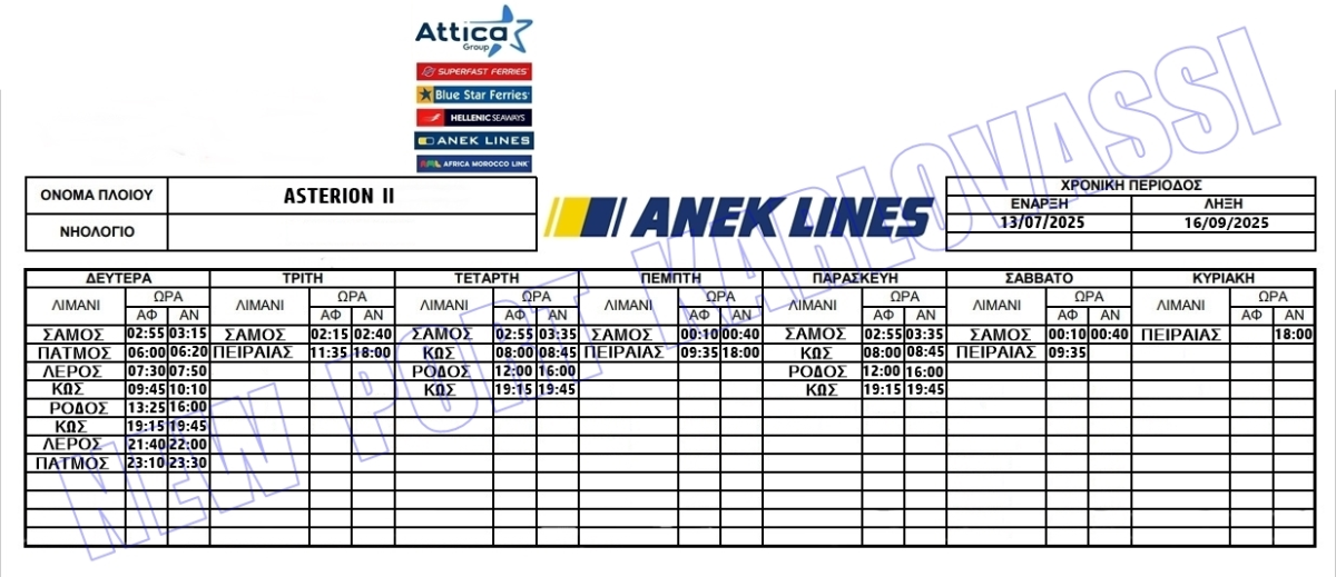- Το “ASTERION II” θα εκτελεί δρομολόγια από τις 13 Ιουλίου έως και τις 16 Σεπτεμβρίου.