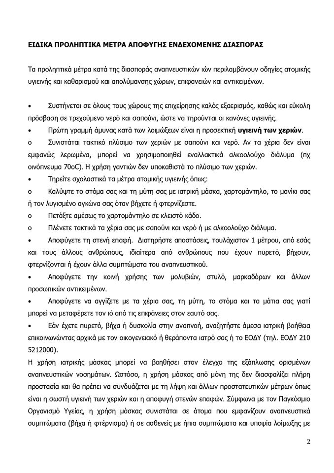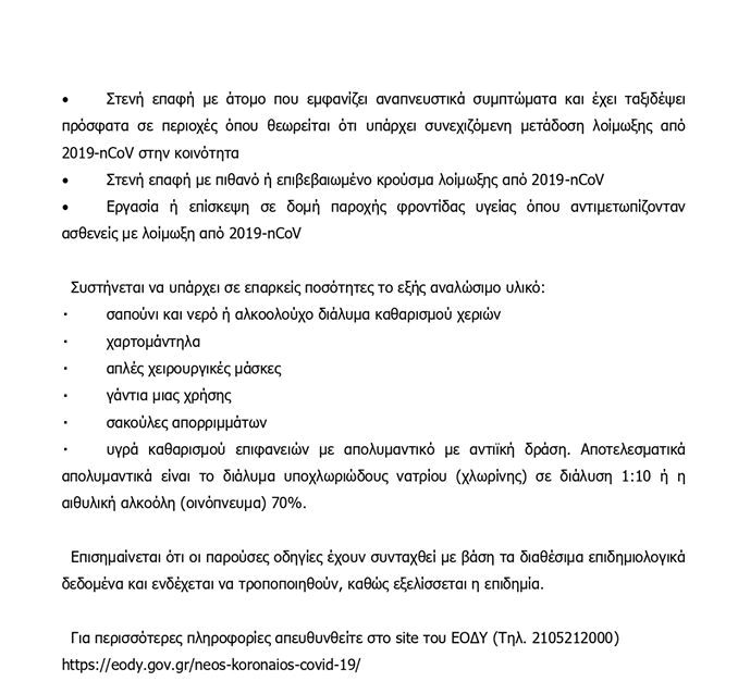 Τέλος, συστήνεται σε όλους τους πολίτες που διαμένουν στη Λέρο να είναι προσεκτικοί στις επαφές τους (ειδικά με άλλους πολίτες που διαμένουν σε περιοχές της χώρας αλλά και του εξωτερικού όπου παρατηρείται έξαρση της ίωσης) και να αναφέρουν άμεσα τυχόν ύποπτα συμπτώματα που παρουσιάζουν στις αρμόδιες υγειονομικές αρχές.