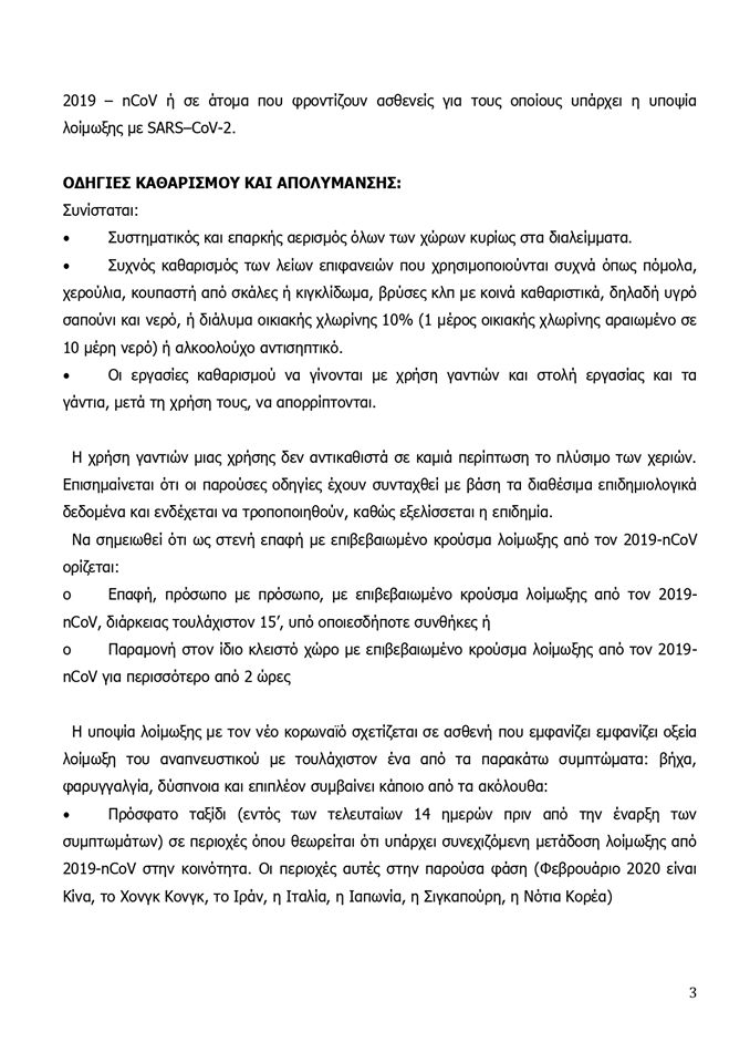 Επίσης, αν και δεν κρίνεται απαραίτητη και δεν προβλέπεται η απολύμανση των σχολικών μονάδων καθώς και των λοιπών δημοτικών κτιριακών εγκαταστάσεων σύμφωνα με τον ΕΟΔΥ, ο Δήμος Λέρου καθώς και τα νομικά του πρόσωπα (Σχολική Επιτροπή Πρωτοβάθμιας – Δευτεροβάθμιας Εκπαίδευσης Δήμου Λέρου, ΔΟΠΑΙΣΑΠ – Παιδικοί Σταθμοί – Αθλητικές Εγκαταστάσεις – Λιμενικό Ταμείο) θα προβούν σε απολύμανση όλων των κτιρίων αρμοδιότητάς τους, στο πλαίσιο προληπτικών μέτρων.