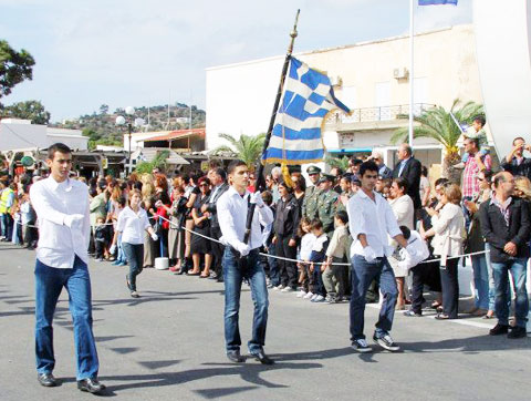Της παρέλασης προηγήθηκε δοξολογία και κατάθεση στεφάνων από τους επισήμους και της αρχές του νησιού μας.
