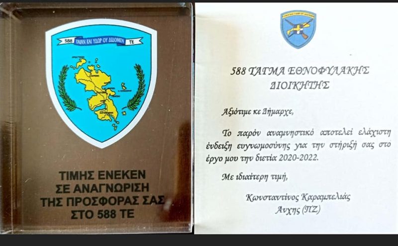 Παράλληλα καλωσόρισε το νέο Διοικητή ο οποίος στο παρελθόν είχε υπηρετήσει στο 588 ΤΕ, διαβεβαιώνοντας τον ότι ο Δήμαρχος και η Δημοτική Αρχή θα είναι συμπαραστάτες στο δύσκολο έργο που αναλαμβάνει.