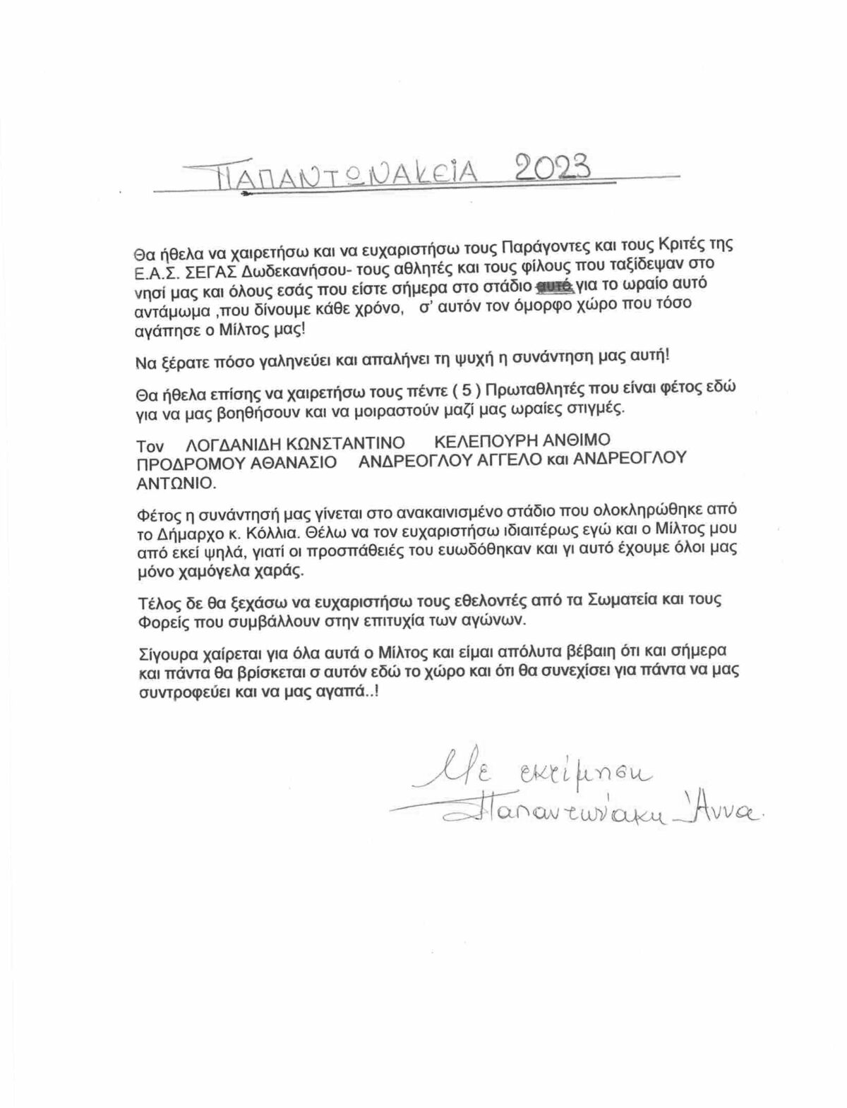 Αρχική » ΟΛΕΣ ΟΙ ΕΙΔΗΣΕΙΣ » ΤΑ ΝΕΑ ΤΗΣ ΛΕΡΟΥ » ΕΠΙΣΤΟΛΗ ΠΑΠΑΝΤΩΝΑΚΗ-ΜΠΙΛΗ ΑΝΝΑ ΓΙΑ ΠΑΠΑΝΤΩΝΑΚΕΙΑ 2023