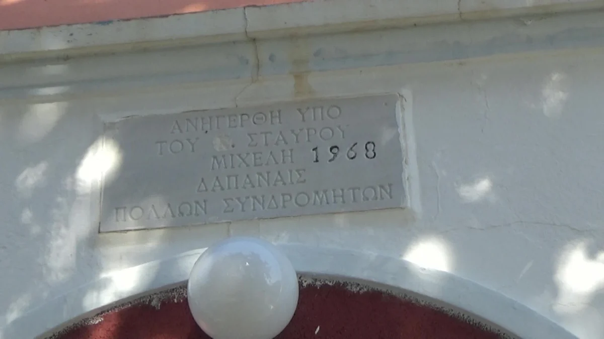 Ξαφνικά ένα πρωί μου έστειλαν στο messenger μία φωτογραφία με ένα περίτεχνο δίμετρο λευκό μάρμαρο που ήταν αφημένο κατά γης, δίπλα σε ένα μικρό εξωκλήσι του 1968 … ακολουθώντας την φωτογραφία βρέθηκα μπροστά στο λευκό αυτό θαύμα που στην μέση έχει ένα περίεργο κόκκινο σταυρό. Τι ήταν άραγε αυτό το μάρμαρο;