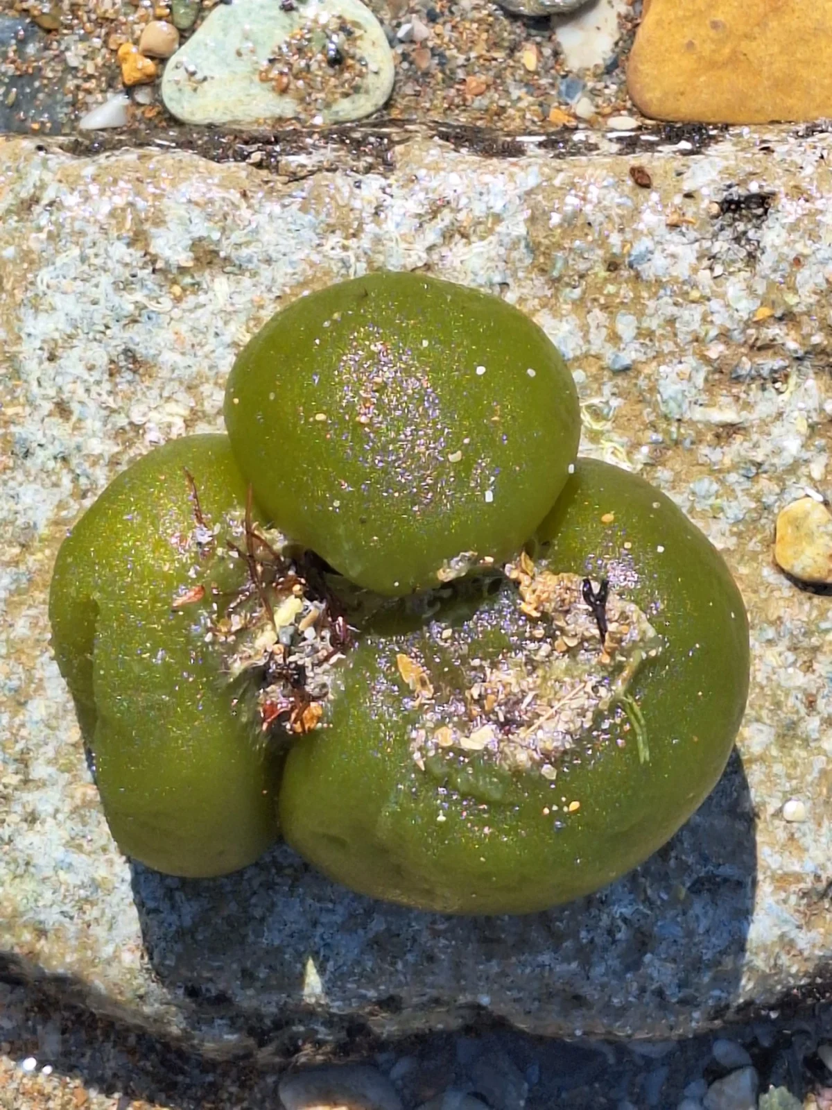 «Είναι ένα είδος θαλάσσιου φυκιού, σφαιρικού σχήματος, με σκούρο πράσινο χρώμα και σπογγώδη υφή. Το βρίσκουμε στη Μεσόγειο και στον Ατλαντικό Ωκεανό, συχνά μαζί με το θαλάσσιο γρασίδι Posidonia oceanica.»