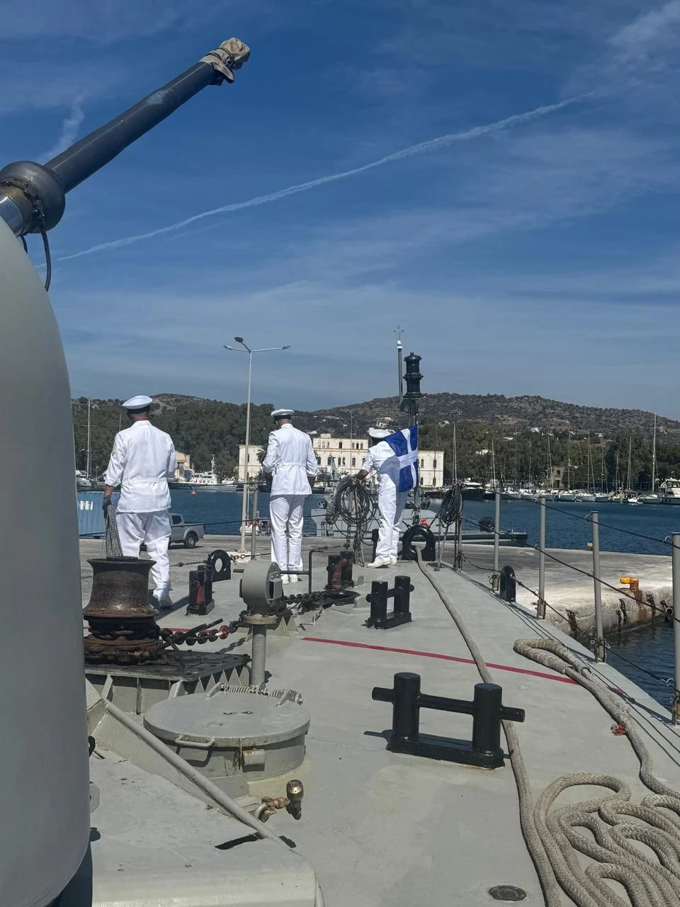 Μετά τη δοξολογία που τελέστηκε στον Ιερό Ναό Αγίου Νικολάου, ο κ. Παππάς κατέθεσε στεφάνι στη μνήμη των ηρώων ναυτικών που θυσιάστηκαν για την ελευθερία της πατρίδας.
