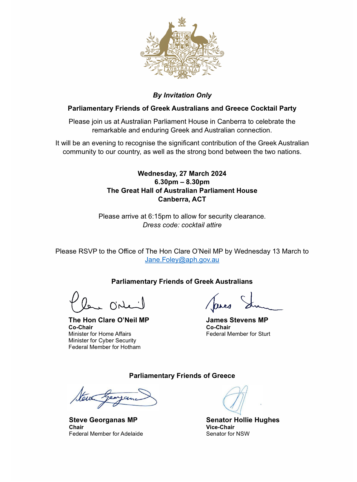 Σε μια πολύ σημαντική για την Ελλάδα εκδήλωση προσκλήθηκε ανάμεσα σε πολύ λίγους ομογενείς, ο συμπατριώτης μας και Επίτιμος Πρεσβευτής της Λέρου στην Αυστραλία κ Γεώργιος Εμμ. Παυλής από το Αυστραλιανό Κοινοβούλιο στην Καμπέρα!