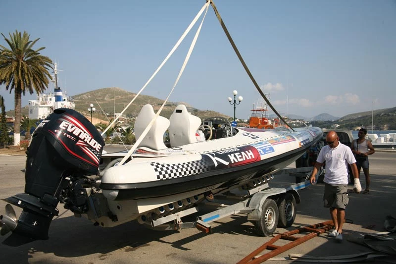 Το νέο αγωνιστικό 8.20 της Olympic στη γλύστρα.Στα του αγώνα τώρα, οι συμμετοχές μειώθηκαν ακόμη περισσότερο, σε σχέση με τα σκάφη που έτρεξαν στη Ρόδο, και περιορίστηκαν στις δέκα έξι. Τέσσερα σκάφη στη «μικρή» κατηγορία sport μέχρι 200 h.p., επτά στην κατηγορία extra sport μέχρι 300 h.p., και πέντε στη μεγάλη κατηγορία super sport με κινητήρες 2Χ300 h.p. Η Οργανωτική Επιτροπή του αγώνα φάνηκε πάντως απ’ την πρώτη στιγμή ότι ήθελε να πιάσει τον «ταύρο απ’ τα κέρατα» και να αποφύγει τα λάθη που έγιναν κατά τη διάρκεια της πρώτης αγωνιστικής. Κατά τη Ο τρόπος ανεφοδιασμού με καύσιμα ήταν ιδανικός.γνώμη μου τα πήγε περίφημα, με εξαίρεση το «ωράριο λειτουργίας» του park fermee, το οποίο δεν τηρήθηκε, με αποτέλεσμα σκάφη να μπαίνουν και να βγαίνουν και καπάκια κινητήρων να ανοίγονται, μετά από σχετική ωστόσο αίτηση των ενδιαφερομένων και παρουσία τεχνικού της Επιτροπής. Κατά την ταπεινή μου πάντως άποψη, και από την εμπειρία που έχω αποκομίσει από αγώνες οι οποίοι πραγματοποιούνται στο εξωτερικό, park fermee σημαίνει “χώρος κλειστός”, ο οποίος δεν πρέπει να είναι προσβάσιμος, αφ’ ής στιγμής κλειδωθεί, σε κανέναν απολύτως.