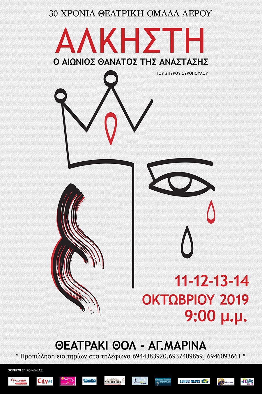 Η Θεατρική Ομάδα Λέρου παρουσιάζει το έργο «Άλκηστη, ο αιώνιος θάνατος της ανάστασης» του Σπύρου Συρόπουλου από το βιβλίο του «Η γυναίκα του άλλου μύθου».