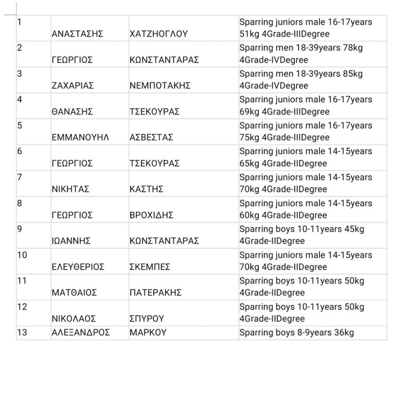Τα παιδιά που θα αγωνιστούν ανά κατηγορία είναι τα παρακάτω.