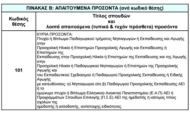 Οι υποψήφιοι όλων των ειδικοτήτων πρέπει να είναι ηλικίας από 18 έως 65 ετών.