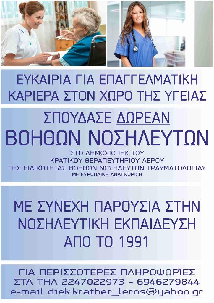 DIEK State Hospital Leros Nursing School 85400 Lepida – Leros | Τel : +30-22470-22973