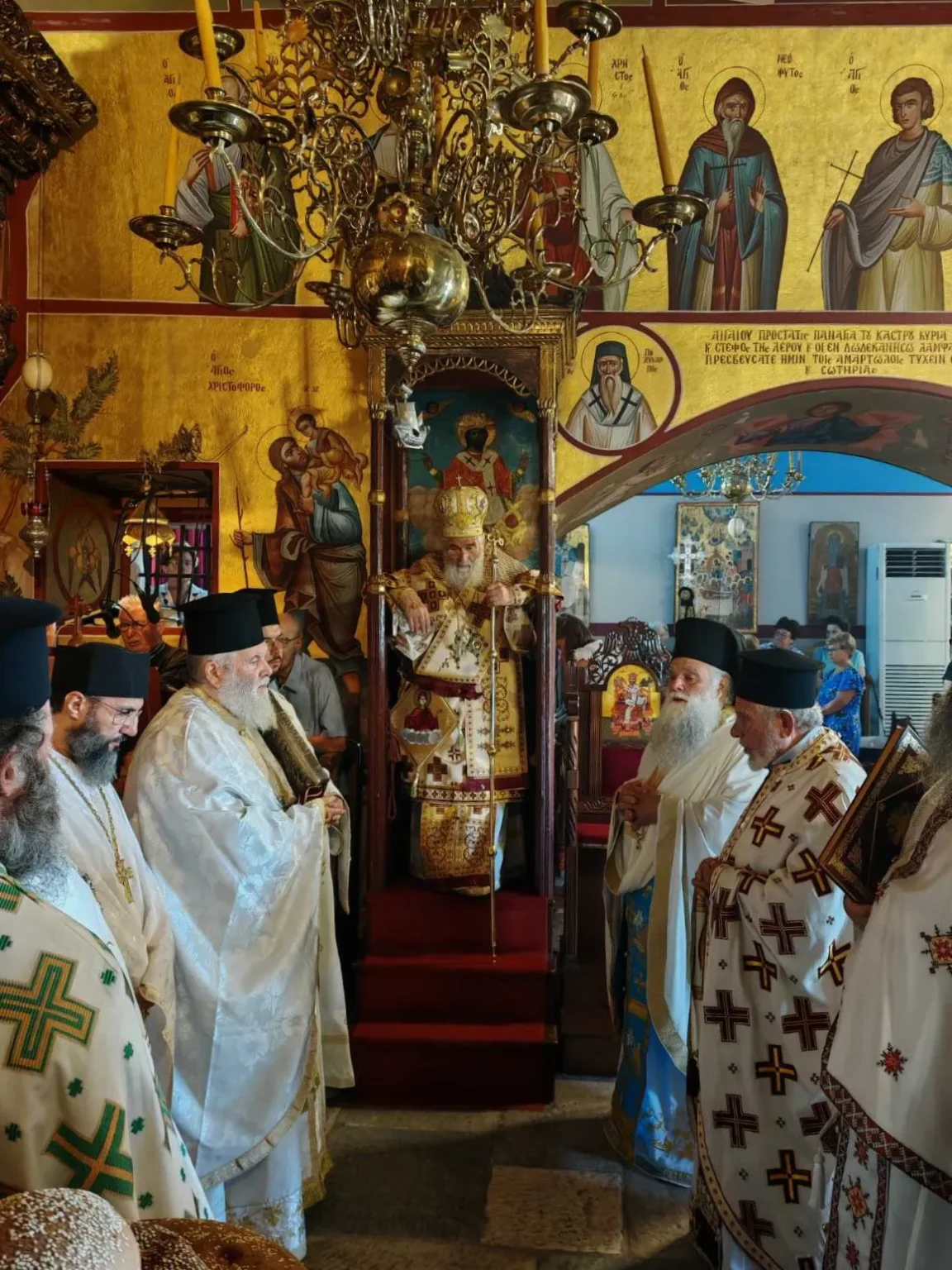 Την κυριώνυμη ημέρα, Σάββατο 23 Αυγούστου, εψάλη ο Όρθρος και τελέσθηκε Πανηγυρική Αρχιερατική Θεία Λειτουργία, υπό του Σεβασμιωτάτου Μητροπολίτου μας κ. Παϊσίου, συλλειτουργούντος του Αρχιερατικού Επιτρόπου πρωτ. Νικοδήμου Φωκά και πλειάδος Ιερέων. Πριν την Θ.Λειτουργία ο Μητροπολίτης χειροθέτησε πνευματικό τον αιδεσιμολογιώτατο π. Ιωάννη Ταχλιαμπούρη, εφημέριο του Ι. Ναού Αγίας Μαρίνης Λέρου.