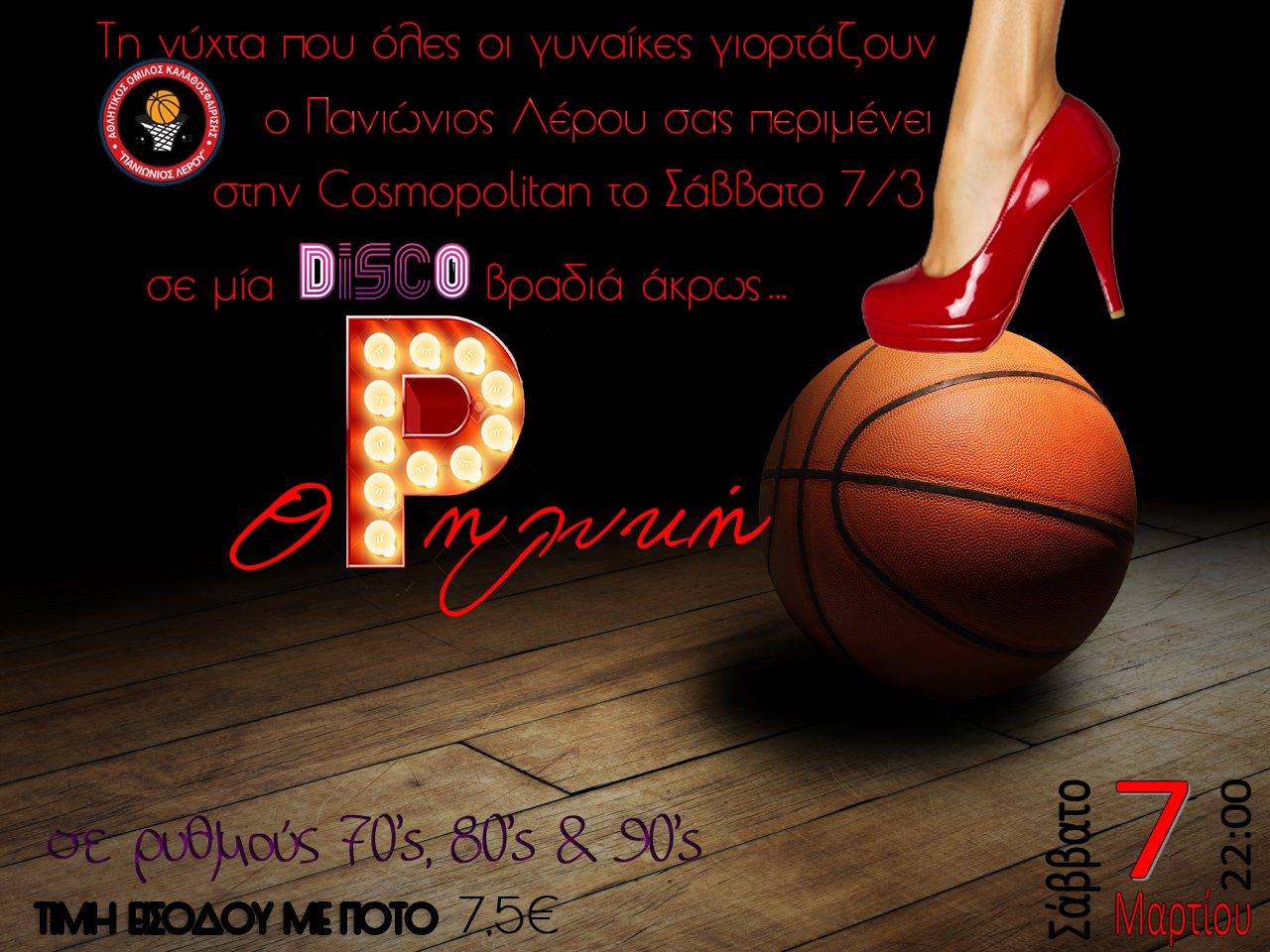 Τη νύχτα που όλες οι γυναίκες γιορτάζουν ο Πανιώνιος Λέρου σας περιμένει στο Cosmopolitan Club στα Άλιντα, το Σάββατο 7/3 σε μια ανεπανάληπτη DISCO βραδιά!