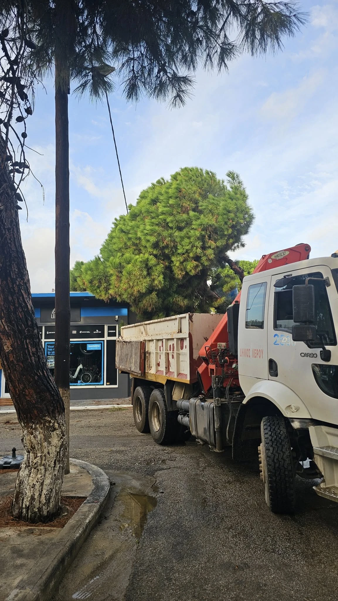 Η Τεχνική Υπηρεσία του Δήμου Λέρου έσπευσε άμεσα στο σημείο, προκειμένου να απομακρύνει το πεύκο και να αποκαταστήσει την ασφάλεια στην περιοχή. Οι εργασίες πραγματοποιήθηκαν με τη συνδρομή ειδικού συνεργείου και υπό την επίβλεψη αρμόδιων υπαλλήλων του Δήμου και των Αντιδημάρχων Γιώργου Τσαχουργιανίδη και Γιώργου Κουτούζου.