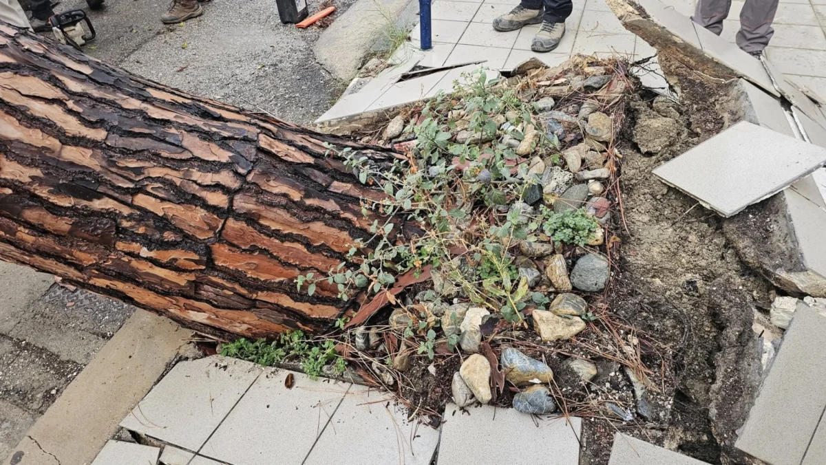 Ένα μεγάλο πεύκο ξεριζώθηκε στην περιοχή του Λακκίου, εξαιτίας της σφοδρής νεροποντής που έπληξε τη Λέρο. Το δέντρο έπεσε πάνω σε κτίριο, προκαλώντας μικρές υλικές ζημιές, χωρίς ωστόσο να αναφερθούν τραυματισμοί.