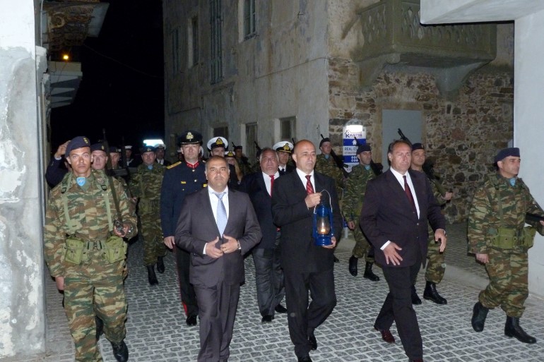 Στις 11:00΄το βράδι, με ευθύνη των Δήμων και σε συνεργασία με την Ιερά Μητρόπολη, έλαβε χώρα η τελετή αφίξεως του Αγίου Φωτός.