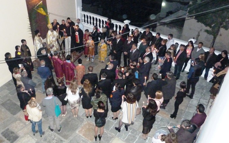 Το «ανάστα ο Θεός» που ψάλλει ο ιερεύς σκορπίζοντας δαφνόφυλλα και ο μεγάλος «σεισμός» με κροτίδες από τα παιδιά και κτυπήματα των στασιδιών από τους πιστούς, δίδει το μήνυμα της Ανάστασης. Όλοι στη συνέχεια προσέρχονται στο Ποτήριο της Ζωής.