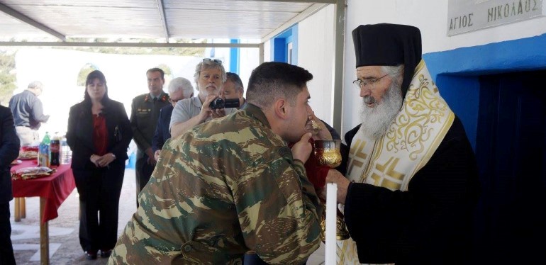 Ο Θεοφ. Επίσκοπος Στρατονικείας κ. Στέφανος, συνοδευόμενος από τον Έπαρχο, τον Δήμαρχο Λέρου, τον Δκτη του 588ΤΕ, τον κ.Λιμενάρχη, δημοτικούς συμβούλους, κ.α., μετέβησαν στο ακριτικό φυλάκιο του Φαρμακονησίου, όπου με ιδιαίτερη κατάνυξη τελέστηκε η λειτουργία της πρώτης Αναστάσεως.