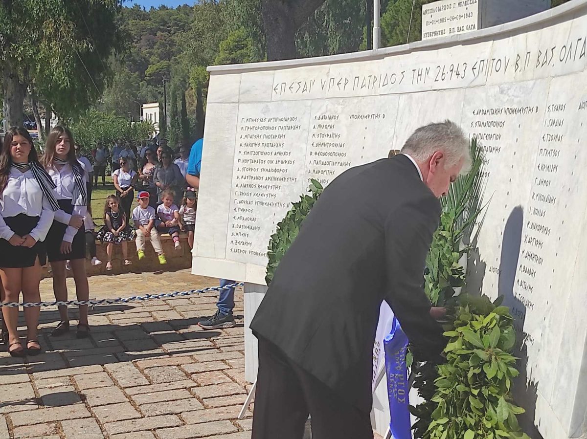 Μετά το πέρας της Δοξολογίας, στο μνημείο πεσόντων του Α/Τ «Β.Όλγα», έλαβε χώρα επιμνημόσυνος δέησις υπό του Σεβ. Μητροπολίτου Λέρου, Καλύμνου και Αστυπαλαίας κ. Παϊσίου, προσκλητήριο πεσόντων με ριπές όπλων, καταθέσεις στεφάνων, ενός λεπτού σιγή και ανάκρουση του Εθνικού Ύμνου από την μπάντα του Πολεμικού Ναυτικού.
