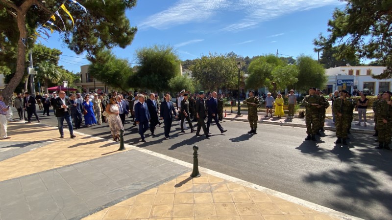 Μετά το πέρας της Θείας Λειτουργίας, βάσει επισήμου προγράμματος που εξέδωσε το Γενικό Επιτελείο Ναυτικού και η ΥΝΤΕΛ, ετελέσθη επίσημος Δοξολογία, παρουσία του Υπουργού Εθνικής Αμύνης Νίκου Δένδια, των βουλευτών Δωδεκανήσου Βασιλείου Υψηλάντη, Ιωάννη Παππά και Μάνου Κόνσολα, του Αντιπεριφερειάρχου Ν.Αιγαίου Χρήστου Ευστρατίου, του Αρχηγού ΓΕΕΘΑ Στρατηγού Δημητρίου Χούπη, του Διοικητού ΔΔΜΝ Αντιναυάρχου (Μ) Παναγιώτη Δημητρόγλου ΠΝ, ο οποίος εκπροσώπησε τον Αρχηγό ΓΕΝ Αντιναύαρχο Δημήτριο-Ελευθέριο Κατάρα ΠΝ, του Αρχηγού ΓΕΣ αντιστρατήγου Γεωργίου Κωστίδη, του Δκτού ΑΣΔΕΝ αντιστρατήγου Εμμ.Θεοδώρου, του Διοικητού 80ΑΔΤΕ Ταξιάρχου Παύλου Ανδρικόπουλου, του Δντού της Β΄ Αστυνομικής Δνσης Δωδ/σου Ταξιάρχου Εμμ.Καζαμία, του Στρατιωτικού Ακολούθου Άμυνας του Ηνωμένου Βασιλείου στην Ελλάδα, του εκπροσώπου Περιφέρειας Ι.Θεμέλαρου, του Δημάρχου Λέρου Τιμ. Κωττάκη, του Φρουράρχου Λέρου Πλοιάρχου Κων/νου Συρόπουλου ΠΝ, του Διοικητού 588ΤΕ Αν/χου Μαργαρίτη Σταβάρα, του Λιμενάρχου Λέρου Αντ/ρχου ΛΣ Χρ.Ανδριανή, του Διοικητού Α.Τ.Λέρου, του προϊσταμένου του Πυροσβετικού Κλιμακίου Λέρου, Αντιδημάρχων, Δημοτικών Συμβούλων συμπολίτευσης και αντιπολίτευσης, εκπροσώπων του Προσκοπισμού, και λοιπών πολιτικών και στρατιωτικών Αρχών, Σωμάτων Ασφαλείας, Εκπαιδευτικών, Φορέων και Συλλόγων, καθώς και αντιπροσωπειών των σχολείων με τις σημαίες τους. Στο τέλος της Δοξολογίας και σε κλίμα εθνικής ανάτασης εψάλη ο Εθνικός Ύμνος.