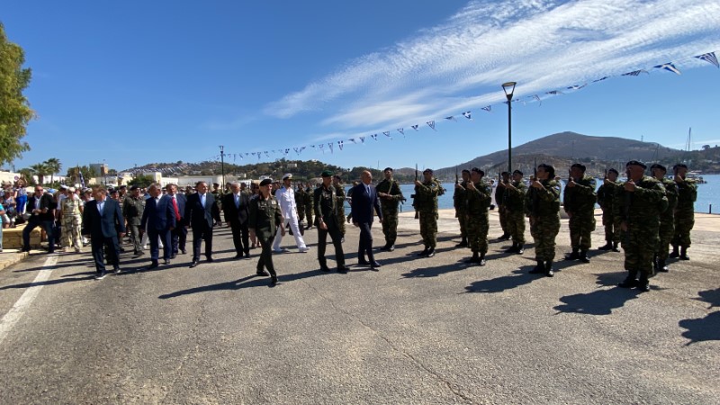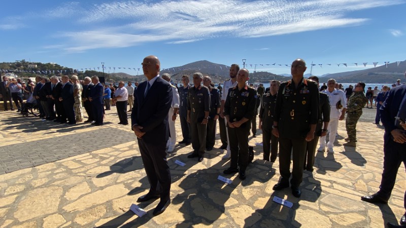 Κατόπιν τον λόγο πήρε ο Υπουργός Εθνικής Αμύνης Ν.Δένδιας, ο οποίος είπε ότι «για πρώτη φορά έρχεται στη Λέρο και μάλιστα για την απόδοση της δέουσας τιμής στους ήρωες πεσόντες του Α/Τ «Β.Όλγα» που βυθίστηκε στις 26 Σεπτεμβρίου 1943, εδώ στο Λακκί της Λέρου». Εξήρε τις δυνατότητες, την ετοιμότητα και το ακμαίο ηθικό των Ενόπλων μας Δυνάμεων, και τόνισε ότι «οι ένοπλες δυνάμεις θα παραμείνουν αρωγός στους κατοίκους της Λέρου, αλλά και των Δωδεκανήσων. Είναι καθήκον των Ενόπλων Δυνάμεων και μεγάλη τους προτεραιότητα να στηρίζουν τις κοινωνίες στις ακριτικές μας περιοχές».
