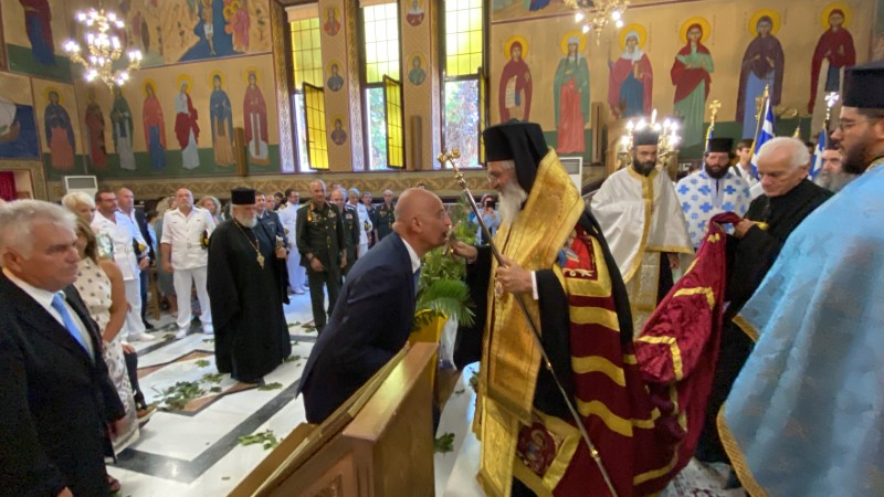 Την πρωΐαν της Πέμπτης 26 Σεπτεμβρίου 2024, ετελέσθη Δισαρχιερατική Θεία Λειτουργία προεξάρχοντος του Σεβασμιωτάτου Μητροπολίτου μας κ. Παϊσίου, συλλειτουργούντος του Θεοφιλεστάτου Επισκόπου Στρατονικείας κ. Στεφάνου, συμπαραστατουμένων υπό του εφημερίου π. Δαμασκηνού Παλαπουγιούκ, του αρχιμ. Αλεξίου Ιστρατόγλου, εφημερίου του Πολεμικού Ναυτικού, και πολλών ιερέων της Ιεράς Μητροπόλεως, αλλά και παρεπιδημούντων ιερέων. Στο τέλος της Θείας Λειτουργίας ετελέσθη Μνημόσυνο δια τους πεσόντες ήρωες του Α/Τ «Β.ΟΛΓΑ» και ο Μητροπολίτης ανέγνωσε τα ονόματα του πληρώματος που θυσιάστηκαν υπέρ Πατρίδος.