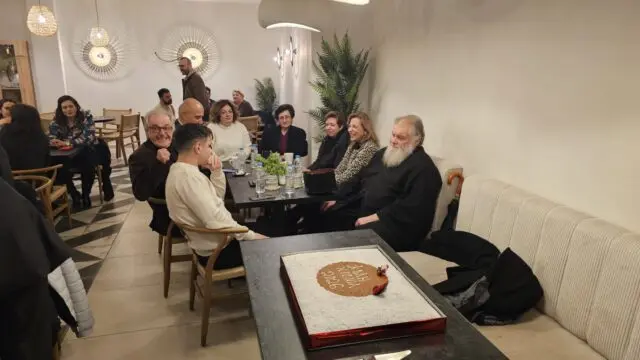 Στο καφέ Mocal πραγματοποιήθηκε η κοπή της πρωτοχρονιάτικης πίτας του Συλλόγου Αιμοδοτών «Η Ζωή», παρουσία του π. Νικόδημου Φωκά, σε μια εκδήλωση με έντονο κοινωνικό αποτύπωμα.