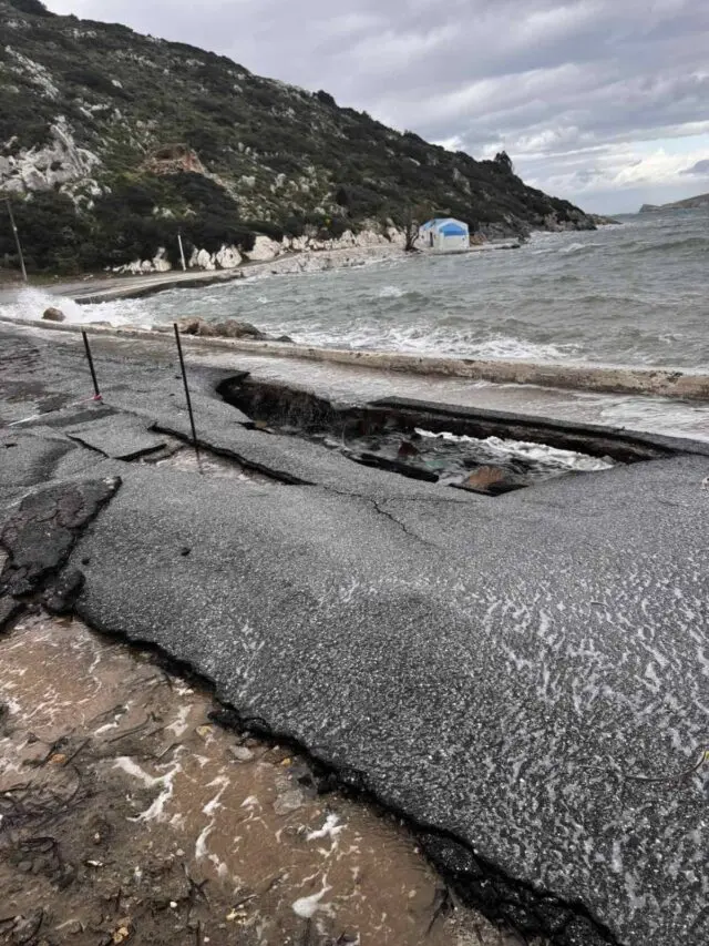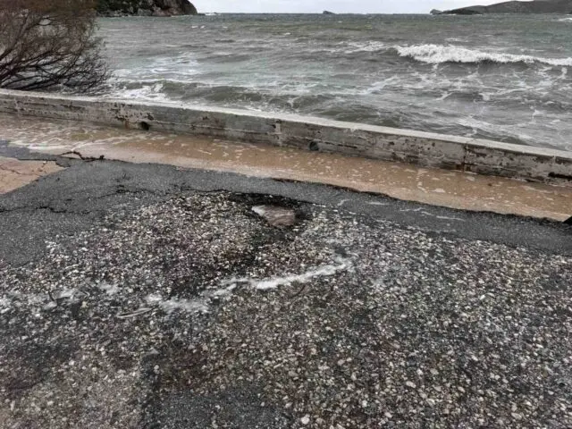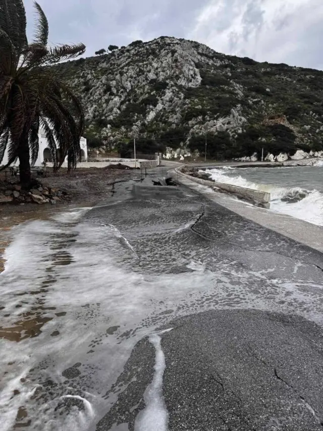 Την ίδια ώρα, οι ζημιές στο παραλιακό οδικό δίκτυο του νησιού είναι εκτεταμένες, με τα συνεργεία της Τεχνικής Υπηρεσίας του Δήμου να βρίσκονται επί ποδός, δίνοντας αγώνα ώστε, σε πρώτη φάση, να εξασφαλιστεί η ομαλή διέλευση από τα κεντρικά σημεία και να αποφευχθούν ατυχήματα.