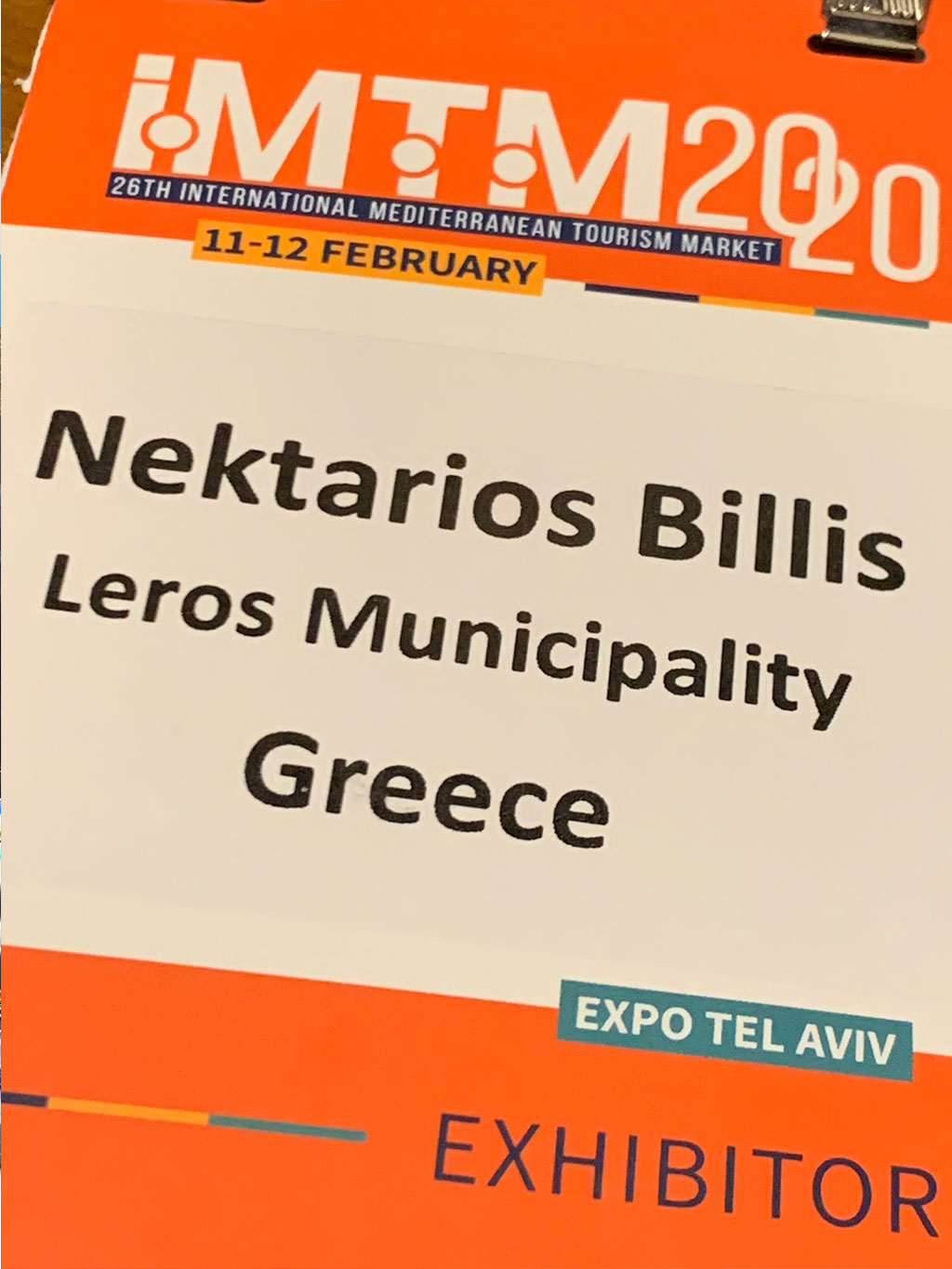 O Πρόεδρος του ΔΗ.ΛΙ.ΤΑ.Λ. και μέλος της Δημοτικής Επιτροπής του Δήμου Λέρου κ. Νεκτάριος Μπίλλης εκπροσώπησε τον Δήμο μας στην έκθεση Τουρισμού “ΙΜΤΜ Ιnternational Tourism Conference” που διεξήχθη στο Τελ Αβιβ, στο Ισραήλ, το διήμερο 11 και 12 Φεβρουαρίου 2020.