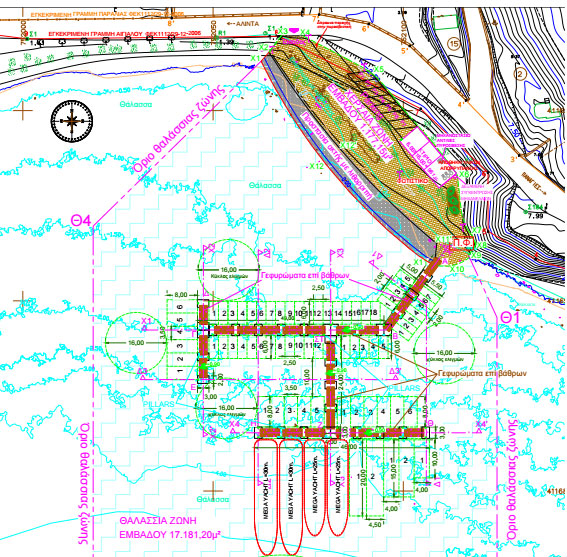Κατά συνέπεια θα αυξηθεί και το εμβαδόν της θαλάσσιας ζώνης ώστε να είναι εφικτοί οι ελιγμοί όλων των σκαφών. Έτσι, η θαλάσσια ζώνη θα έχει εμβαδόν 17.181,20 τ.μ., ενώ το εμβαδόν της χερσαίας ζώνης θα είναι 1.177,15 τ.μ.