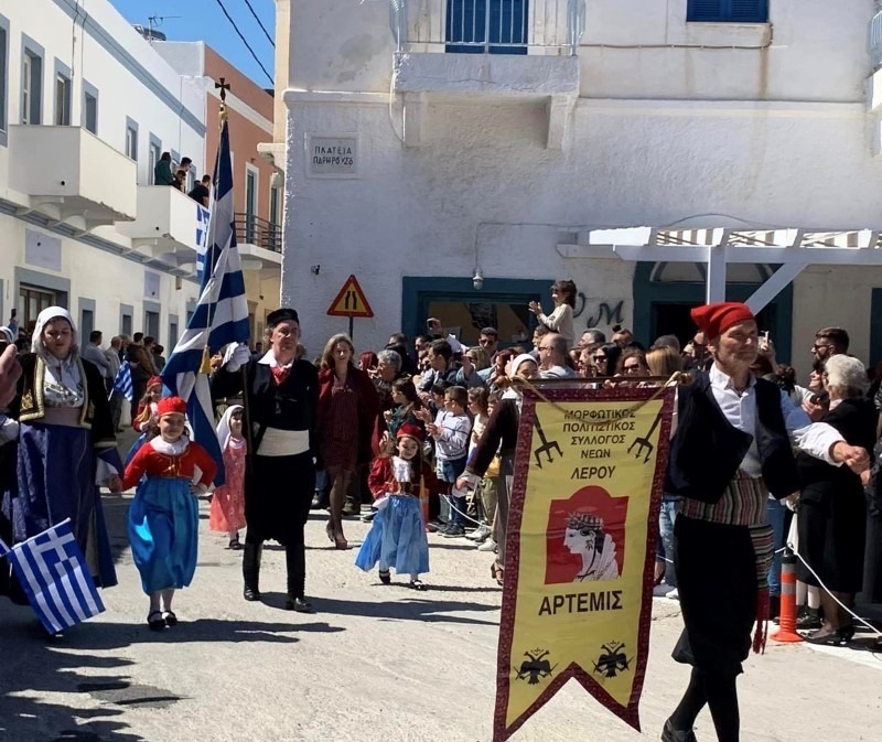 Ο ζεστός, ανοιξιάτικος καιρός, είχε ως αποτέλεσμα πολύς κόσμος να κατακλίσει τον λιμένα της Αγίας Μαρίνας και να καταχειροκροτήσει τα νιάτα του νησιού μας που παρέλασαν. Εντυπωσιακή εμφάνιση της Δημοτικής Φιλαρμονικής, των περιπολικών του Αστυνομικού Τμήματος Λέρου, των οχημάτων πυρόσβεσης του Δήμου, των Συλλόγων, του Προσκοπισμού, των σχολείων όλων των βαθμίδων της εκπαίδευσης, ενώ εθνικό ενθουσιασμό προκάλεσε η παρέλαση των αγημάτων του Ελληνικού μας Στρατού και των Εφέδρων, σε άψογο σχηματισμό.