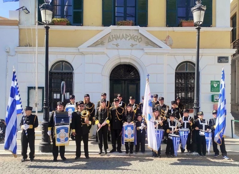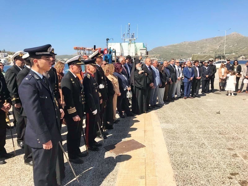 Μετά το πέρας της Δοξολογίας, Κλήρος, Αρχές και Λαός, κατευθύνθηκαν στον λιμένα της Αγίας Μαρίνας, όπου προ της προτομής του παπα-Αναστάση Ζαφειρόπουλου, εψάλλη επιμνημόσυνος δέησις και έγιναν οι καταθέσεις στεφάνων, ενώ τον πανηγυρικό της ημέρας εκφώνησε η εκπαιδευτικός-φιλόλογος του Εσπερινού Γυμνασίου-Λυκείου Αθηνά Θεοφιλοπούλου. Ακολούθησε ενός λεπτού σιγή και η ανάκρουση του Εθνικού Ύμνου. Τιμές απέδωσαν η Δημοτική Φιλαρμονική και άγημα του Στρατού.