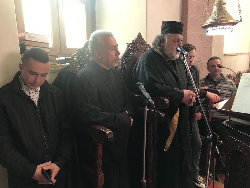 Στο Ιερό Αναλόγιο έψαλλε η χορωδία των καλλίφωνων Ιεροψαλτών της Ιεράς μας Μητροπόλεως υπό την διεύθυνση του μουσικολογιοτάτου πρωτοψάλτου Ελευθερίου Χατζηλάρη.