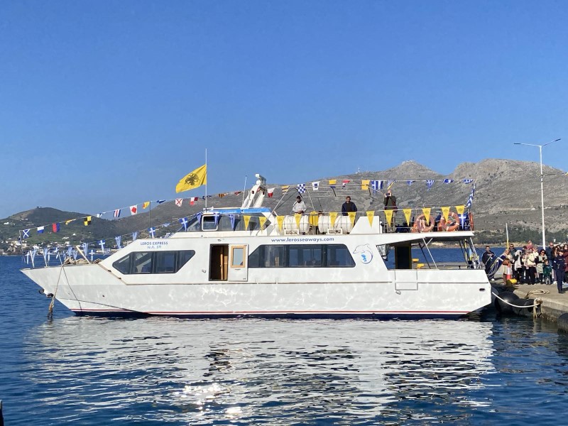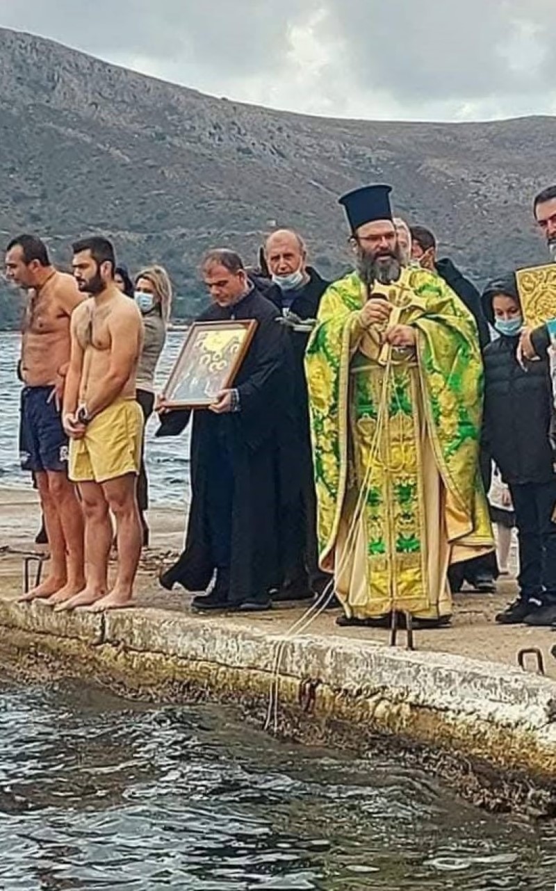 Η τελετή του Αγιασμού των υδάτων στον λιμένα του Λακκιού. Καθεδρικός Ι.Ναός Αγίου Νικολάου Λέρου, εφημέριος π. Δαμασκηνός Παλαπουγιούκ.