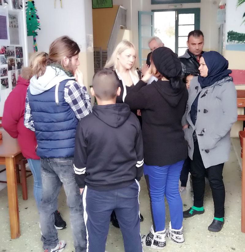 ΦΩΤΟ 2: Η Ειδική Γραμματέας Επικοινωνιακής Διαχείρισης Κρίσεων, Φωτεινή Παντιώρα, με πρόσφυγες που φιλοξενούνται στην Ανοικτή Δομή Προσωρινής Υποδοχής Αιτούντων Διεθνούς Προστασίας (ΠΙΚΠΑ).
