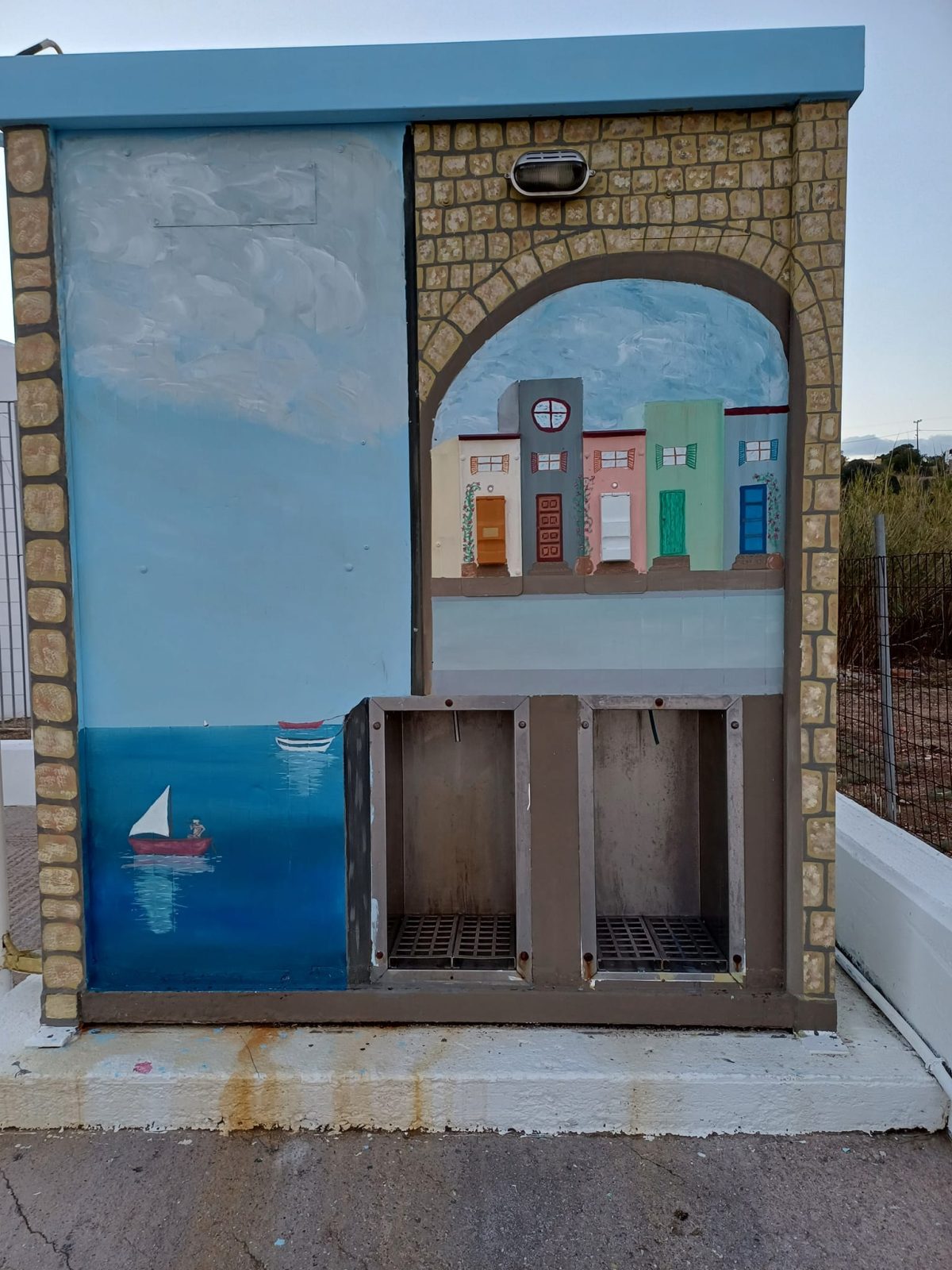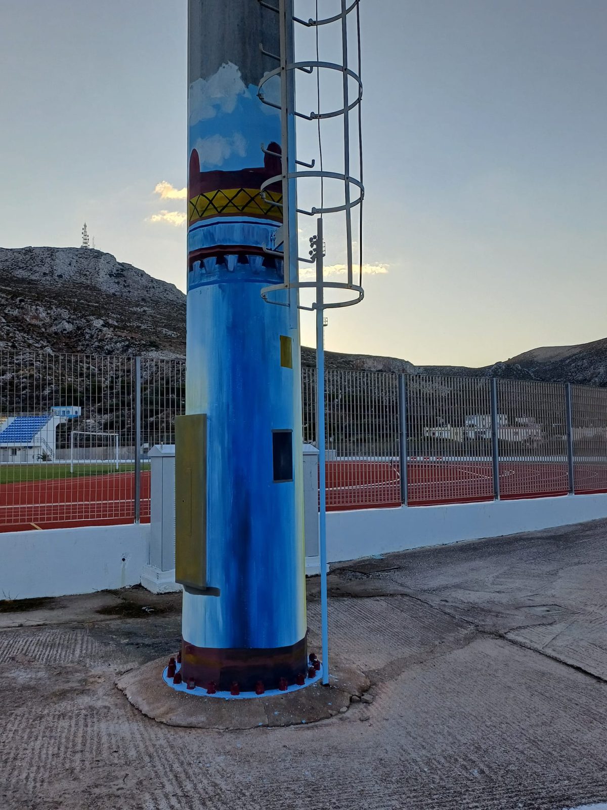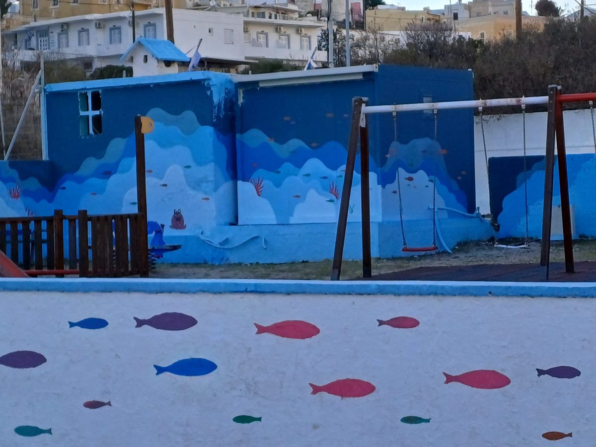 Δυστυχώς οι άσχημες καιρικές συνθήκες, κατά την τετραήμερη παραμονή τους, δεν επέτρεψαν τη ζωγραφική σε περισσότερα σημεία του νησιού μας, όμως μας δόθηκε η δυνατότητα να εκπαιδευτούμε σε βασικές τεχνικές τοιχογραφίας.