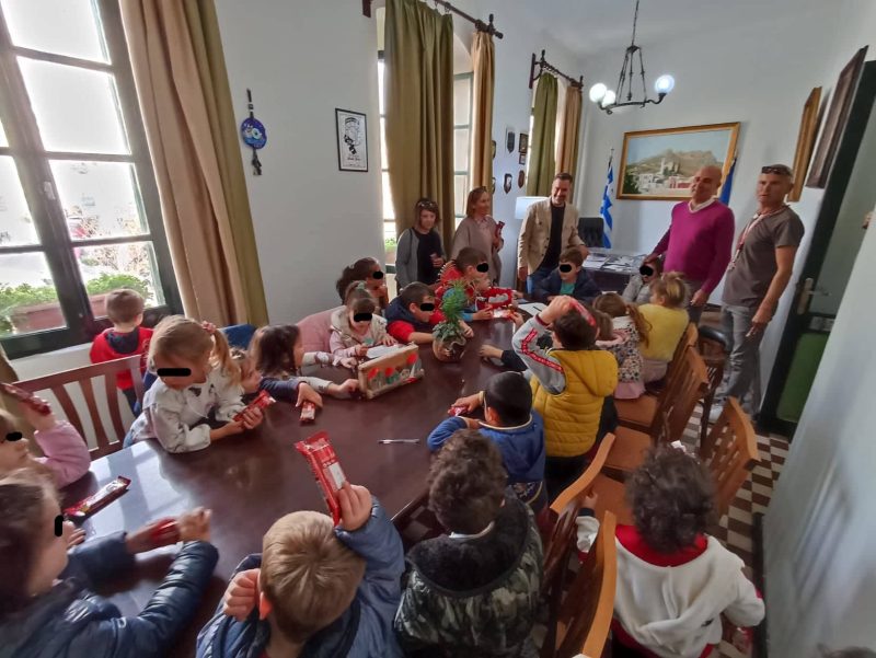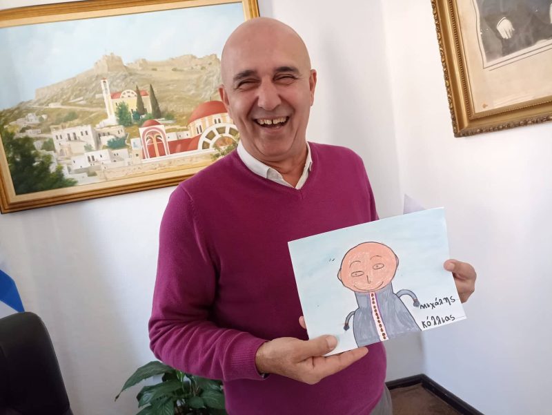 Τέλος, τα παιδιά χάρισαν στον Δήμαρχο κάρτα με ευχές και μία χαριτωμένη ζωγραφιά!
