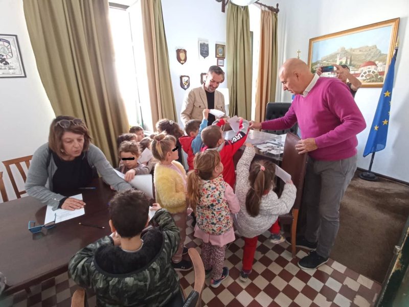 Κατά τη διάρκεια της επίσκεψης τους έγινε αναπαράσταση της διαδικασίας των δημοτικών εκλογών, τους μοιράστηκαν ψηφοδέλτια και το κάθε ένα παιδί το έριχνε στην κάλπη.