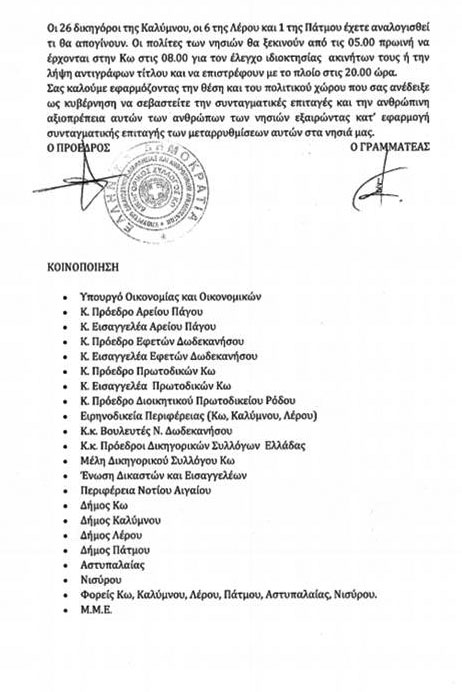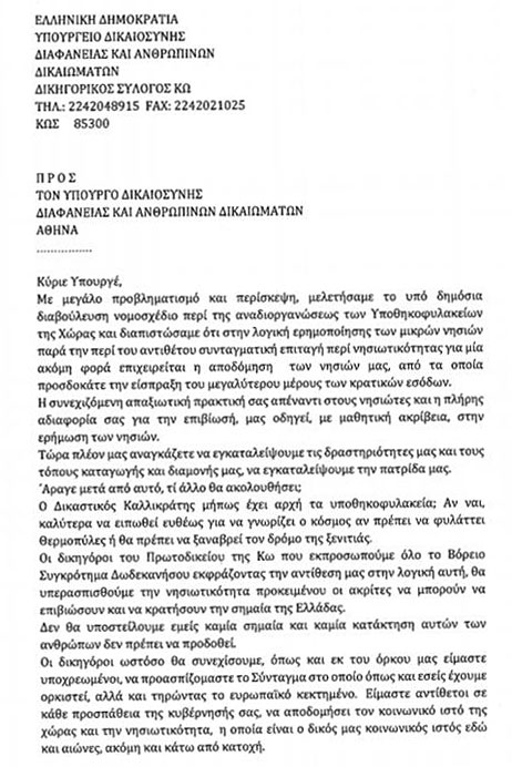 Για το πολύ σημαντικό αυτό θέμα, ο Δικηγορικός Σύλλογος Κω εξέδωσε αιχμηρή επιστολή την οποία απέστειλε ήδη στον Υπουργό Δικαιοσύνης και Ανθρωπίνων Δικαιωμάτων Ν. Παρασκευόπουλο, εκφράζοντας τους προβληματισμούς του και αναδεικνύοντας παράλληλα τα τεράστια προβλήματα που συνεπάγεται η κατάργηση των Υποθηκοφυλακείων στα νησιά.