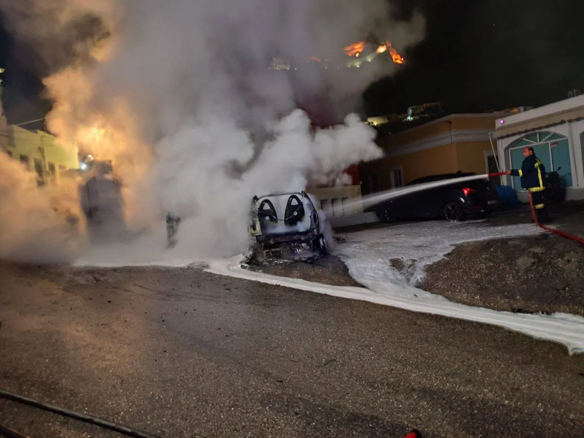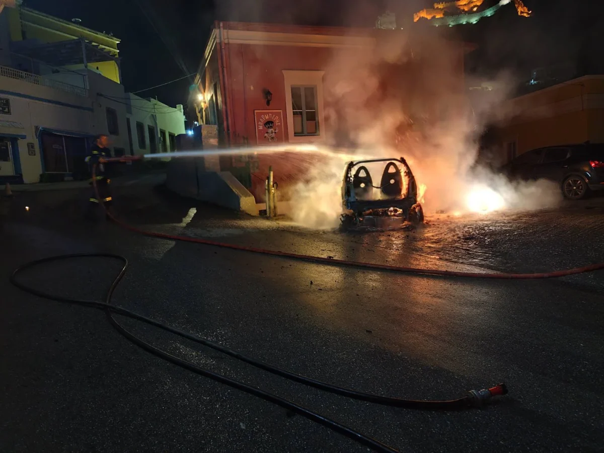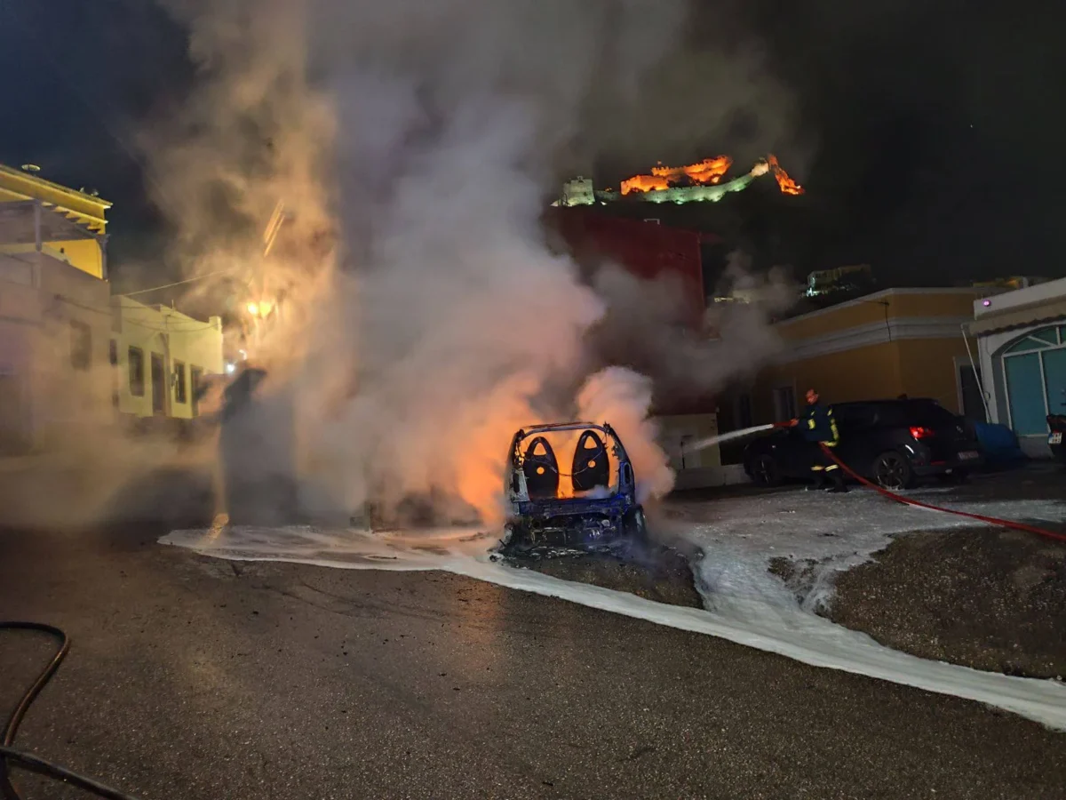 Λέρος: Φωτιά σε αυτοκίνητο που βρισκόταν εν κινήσει, στην περιοχή του Πλατάνου