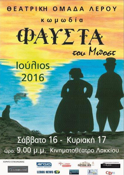 Η Θεατρική Ομάδα Λέρου παρουσιάζει την κωμωδία «Φαύστα» του Μποστ, το Σάββατο και την Κυριακή, 16 και 17 Ιουλίου 2016 στις 9 το βράδυ, στο Δημοτικό Κινηματοθέατρο Λακκίου.