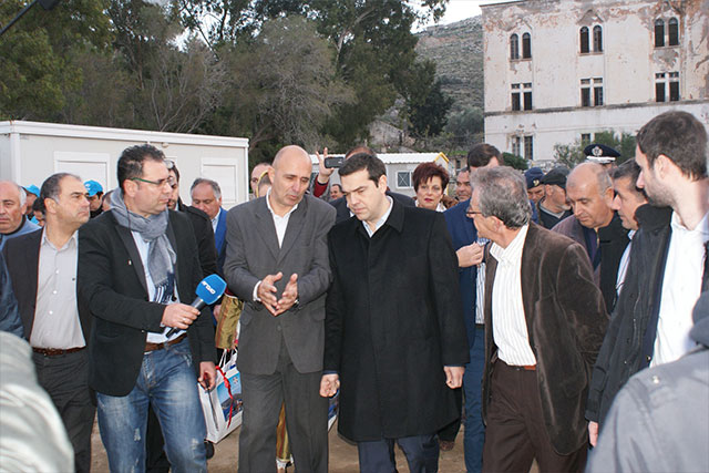 “Το νησί της Λέρου επισκέφτηκε ο πρωθυπουργός της χώρας κ. Αλέξης Τσίπρας, προερχόμενος από τη Χίο, με τη συνοδεία του Υπουργού Μεταναστευτικής Πολιτικής κ. Μουζάλα και υπηρεσιακών παραγόντων, για να διαπιστώσει την πρόοδο των εργασιών στα Λέπιδα , όπου θα λειτουργήσει το νέο κέντρο ταυτοποίησης – πρώτης υποδοχής, ενόψει της σημερινής κρίσιμης Συνόδου Κορυφής για το μεταναστευτικό στις Βρυξέλες.