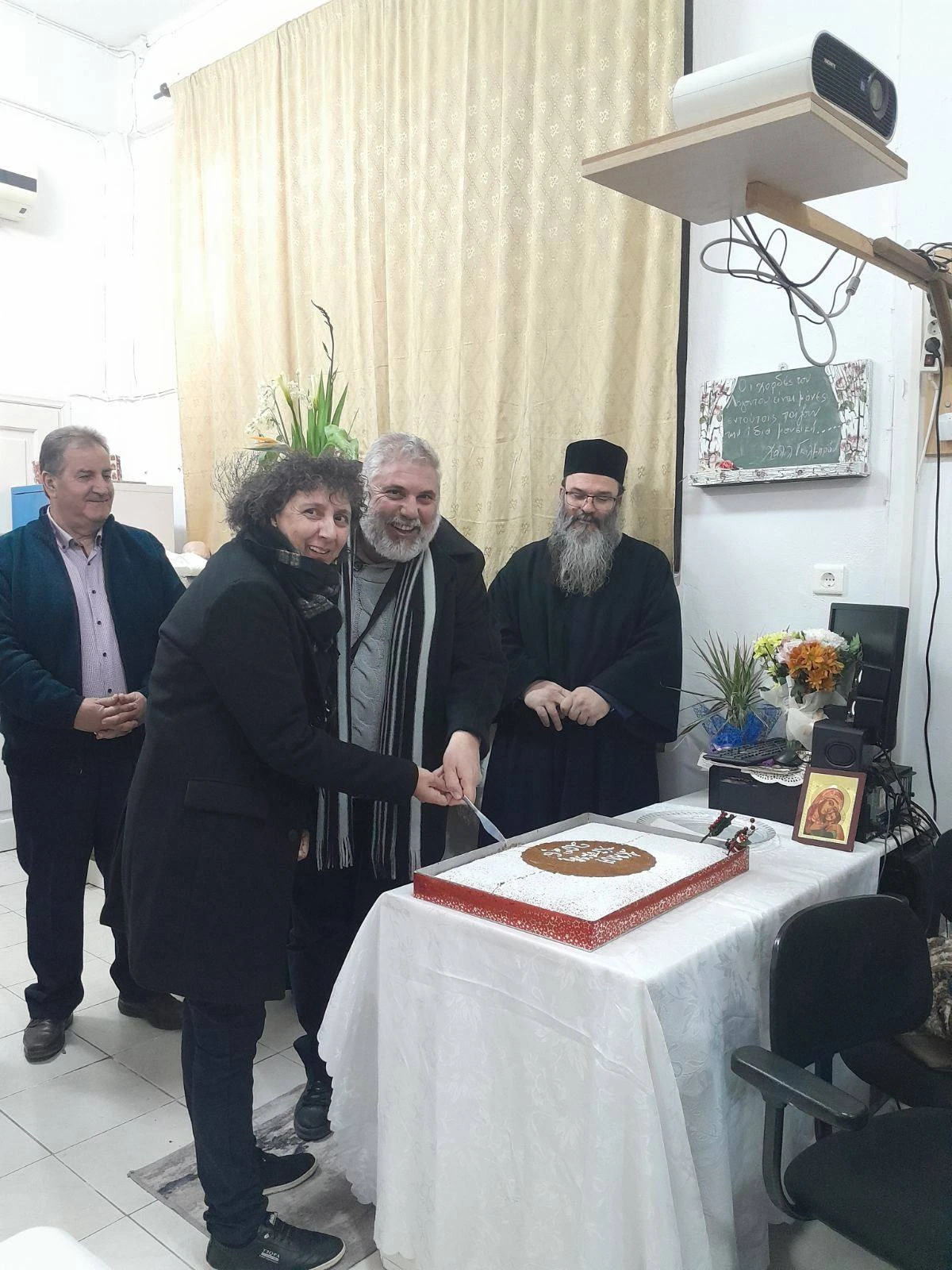 Πραγματοποιήθηκε σήμερα στη ΣΑΕΚ Νοσηλευτικής Λέρου η κοπή της βασιλόπιτας, με τις ευλογίες του Θεοφιλέστατου Επισκόπου Στρατονικίας κ. Στεφάνου και του πρεσβυτέρου της ενορίας Αγίου Νικολάου π. Δαμασκηνού.