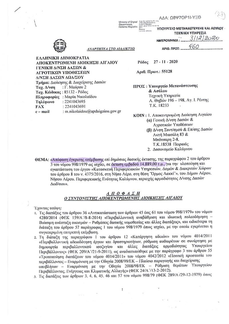 Αρχική » ΟΛΕΣ ΟΙ ΕΙΔΗΣΕΙΣ » ΤΑ ΝΕΑ ΤΗΣ ΛΕΡΟΥ » Λέρος: “Κρανίου τόπος” η δασική/αναδασωτέα έκταση στην οποία κατασκευάζεται το νέο Hot Spot