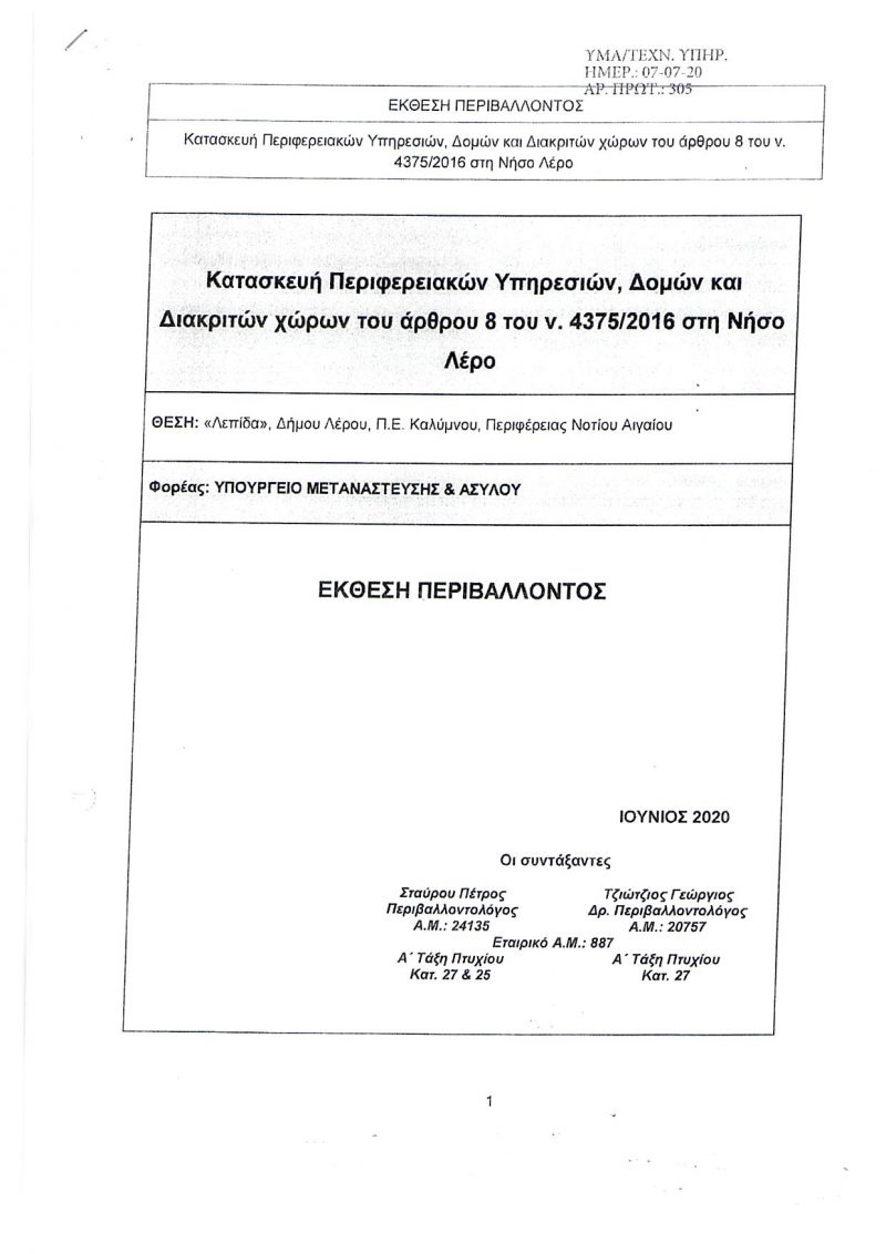 ΕΚΘΕΣΗ ΠΕΡΙΒΑΛΛΟΝΤΟΣ