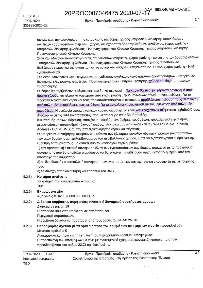 Όμως, όπως προκύπτει από τα έγγραφα που ακολουθούν, στο σημείο ενδιαφέροντος θα έχουμε όχι απλώς πλατφόρμα σκυροδέτησης πάχους 25 cm από οπλισμένο σκυρόδεμα, επί του οποίου θα εδράζονται ΠΡΟΚΑΤ, αλλά επίσης κάποιες από τις εγκαταστάσεις δεν θα είναι κοντέινερ, αλλά «ΚΤΙΡΙΑ με φέροντα οργανισμό από δομικό χάλυβα και ΘΕΜΕΛΙΩΣΗ από οπλισμένο σκυρόδεμα».