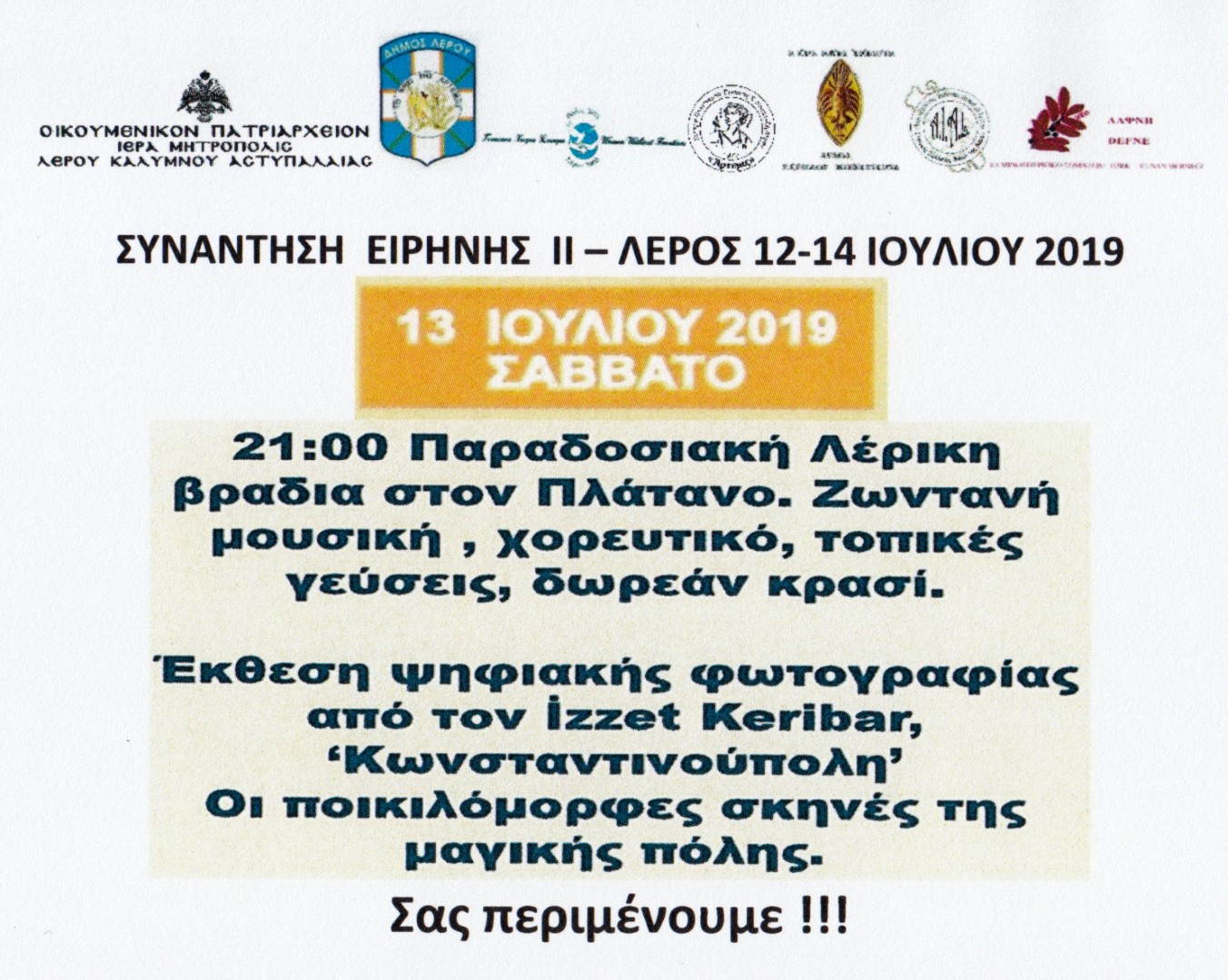 Στις 21:00 Παραδοσιακή Λέρικη βραδιά στον Πλάτανο, με ζωντανή μουσική, χορευτικό ,τοπικές γεύσεις και δωρεάν κρασί.
