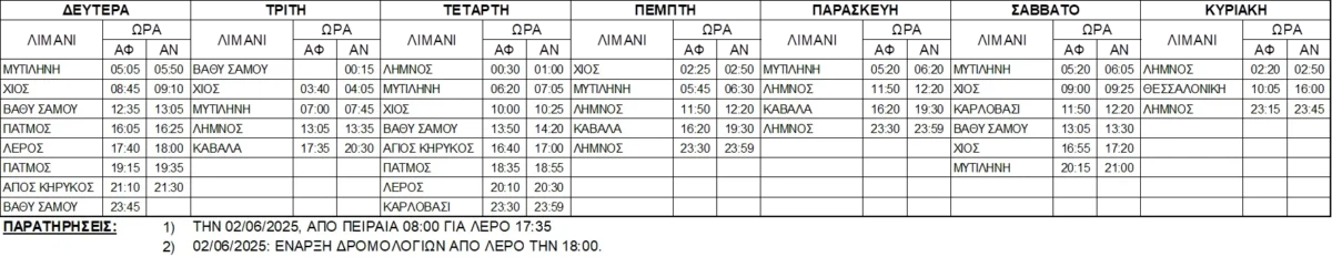 Από τη Δευτέρα 2 Ιουνίου 2025 ξεκίνησαν τα δρομολόγια του “Διαγόρας”, που θα συνδέει τη Λέρο με την Μυτιλήνη – Χίο – Σάμο – Αγ. Κήρυκο – Πάτμο.