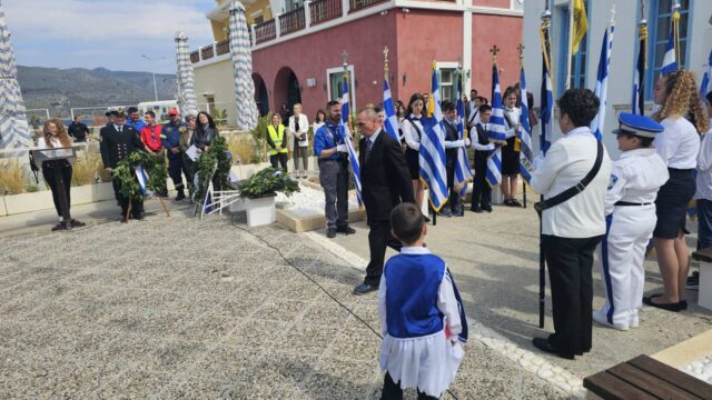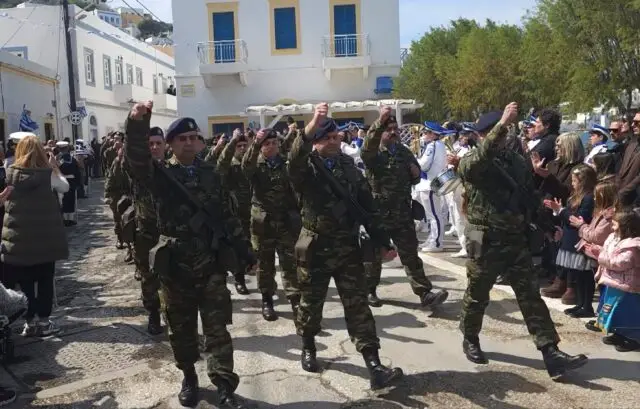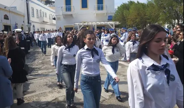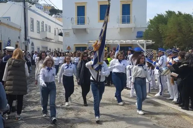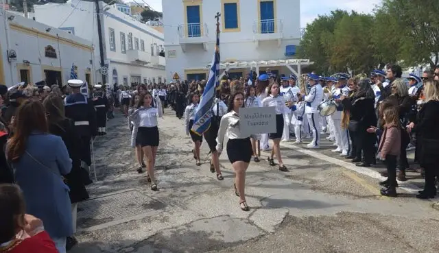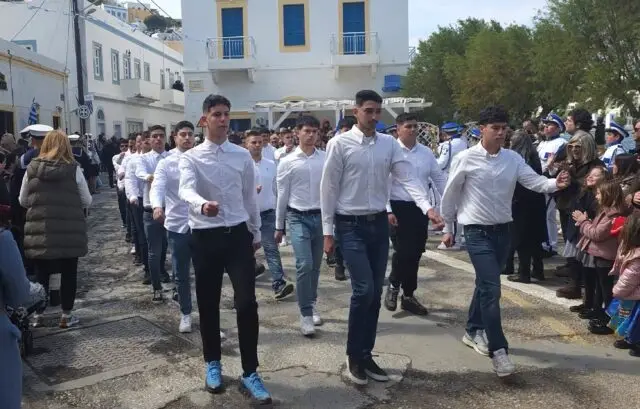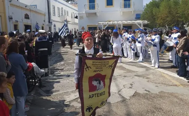 Παρά τον άστατο καιρό, η προσέλευση του κόσμου ήταν μεγάλη, με κατοίκους και επισκέπτες να δίνουν το «παρών» στην κεντρική πλατεία της Αγίας Μαρίνας, παρακολουθώντας με ενδιαφέρον και υπερηφάνεια τη μαθητιώσα νεολαία της Λέρου και τα υπόλοιπα τμήματα της παρέλασης.